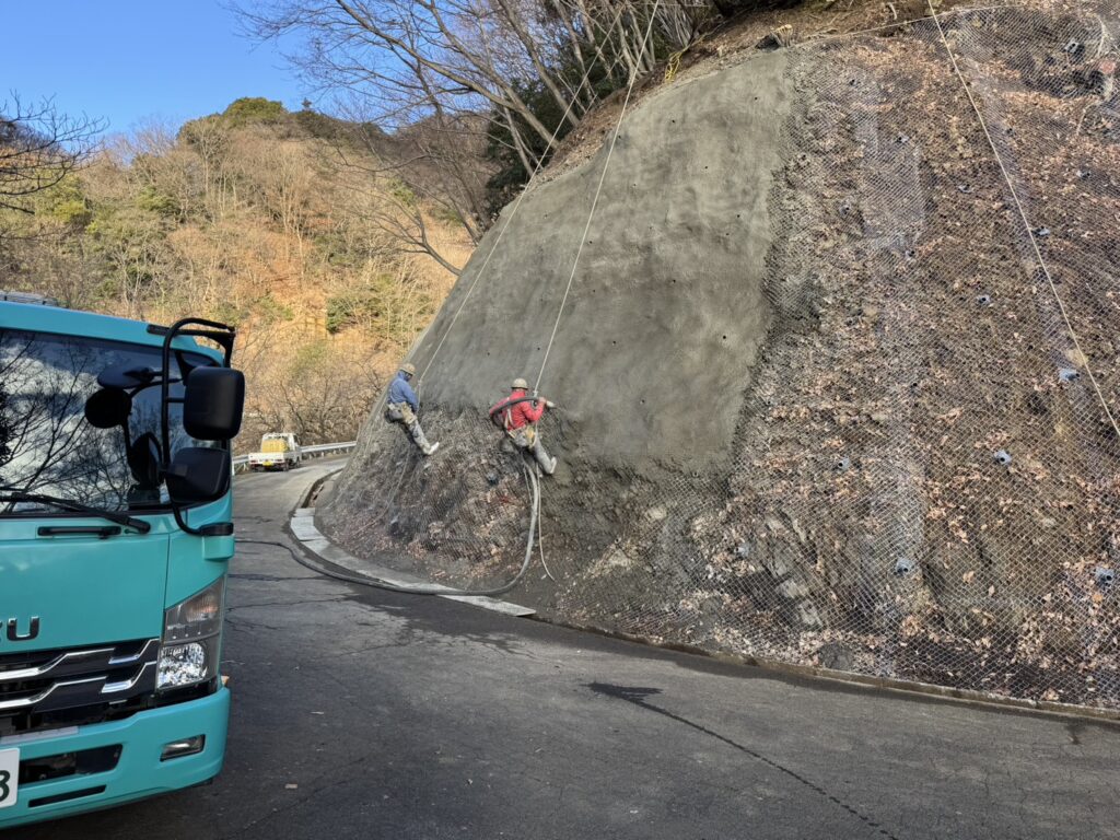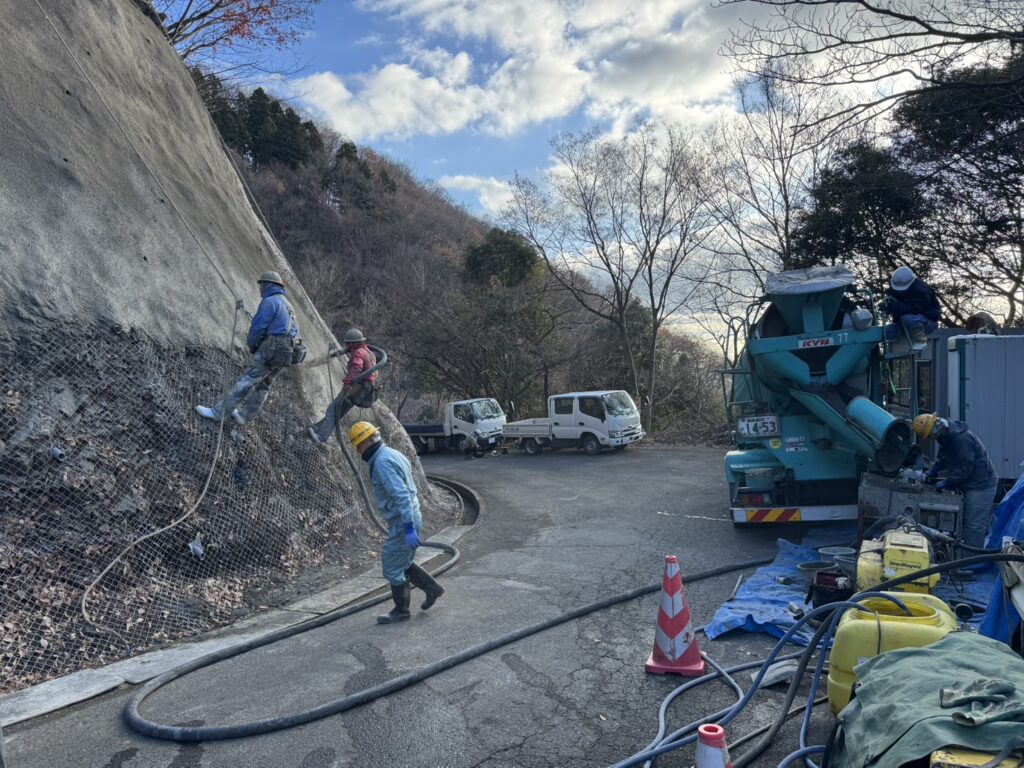 ラス網の施工が完了し、いよいよモルタル吹付が始まりました!👷♂️🛠️
